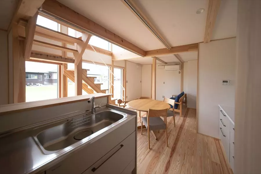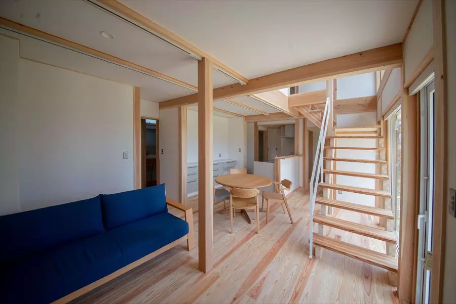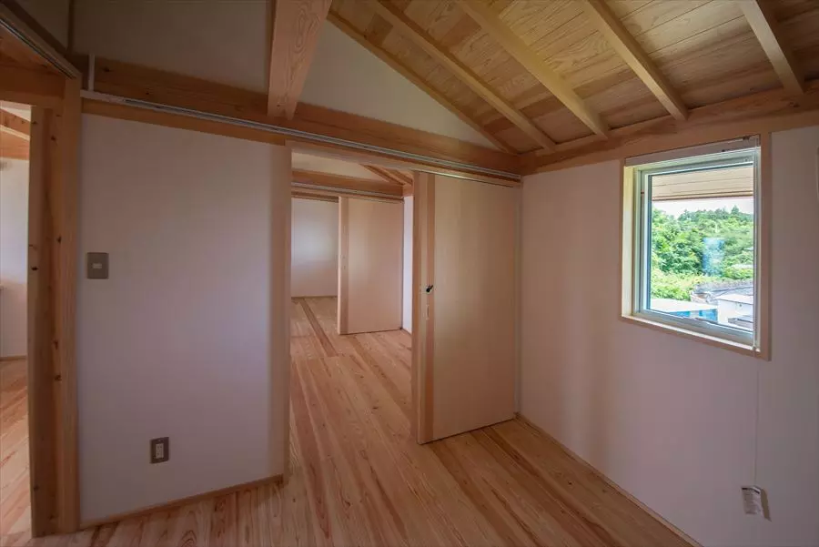 自社の森で育てた木材を使い、梁や柱が見える真壁づくりの美しさを活かしながら、構造や設計をルール化することで、