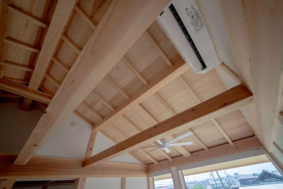 真壁構造での施工が難しいとされる高気密・高断熱性能(Ua値0.44/C値0.2)を実現した、