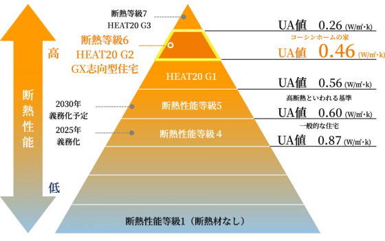 次世代基準をさらに上回るUA値0.46以下をクリア