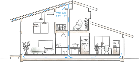 石牧建築では、木材の腐朽などの劣化を軽減し、家の性能を維持するための、最高レベルの基準値をクリア。外壁との間の通気構造、家の土台の防腐・防蟻処理、基礎の高さなど、湿気や白アリといった、木造建築に必須な家を守る対策も標準装備しています。また、配水管やガス管など、継続的に点検・清掃・修繕などのメンテナンスがしやすいように設計しています。