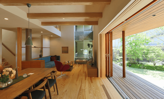 本来、家は地域の気候風土を知り尽くした「地域の工務店」と「地域の職人」が「地域の材料」でつくるものです。また、それは建設時のCO₂を抑える最良の方法でもあります。家づくりの本来あるべき姿として、今、地域工務店がふたたび注目を浴びはじめています。