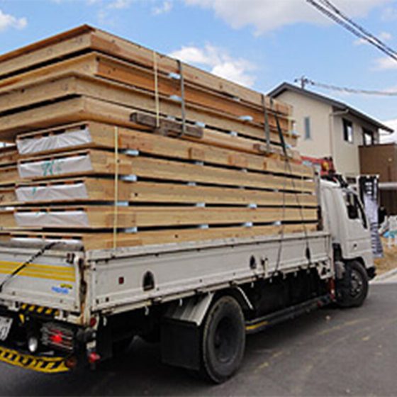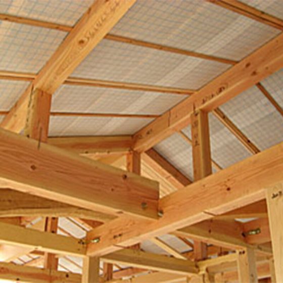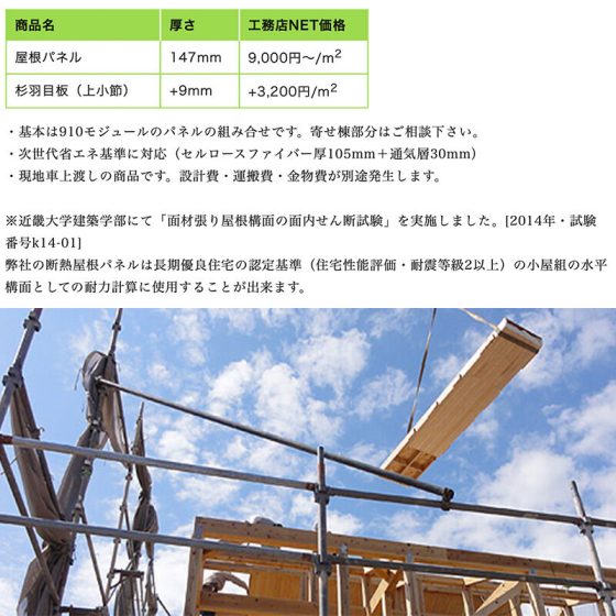 セルロースファイバー断熱層と通気層を組み込んだ屋根パネルを工場で製作し、上棟現場へお届けします。