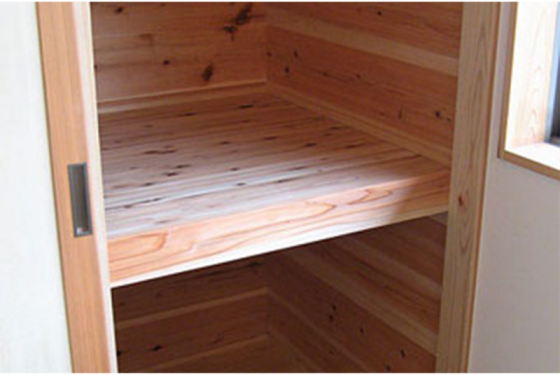 無垢の杉の優れた調湿作用で、押し入れの中の湿気やカビの発生を抑制します。