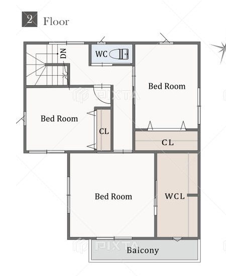 2階には、プライベートな空間が配されています。メインの寝室スイートには、ウォークインクローゼットとバスルームが完備されており、リラックスできるくつろぎのスペースとして快適な生活を提供します。さらに、子供部屋やゲスト用の寝室、共用のバスルームも2階に配置されています。