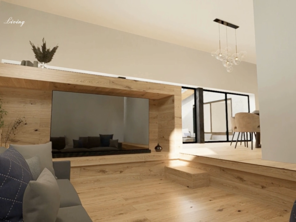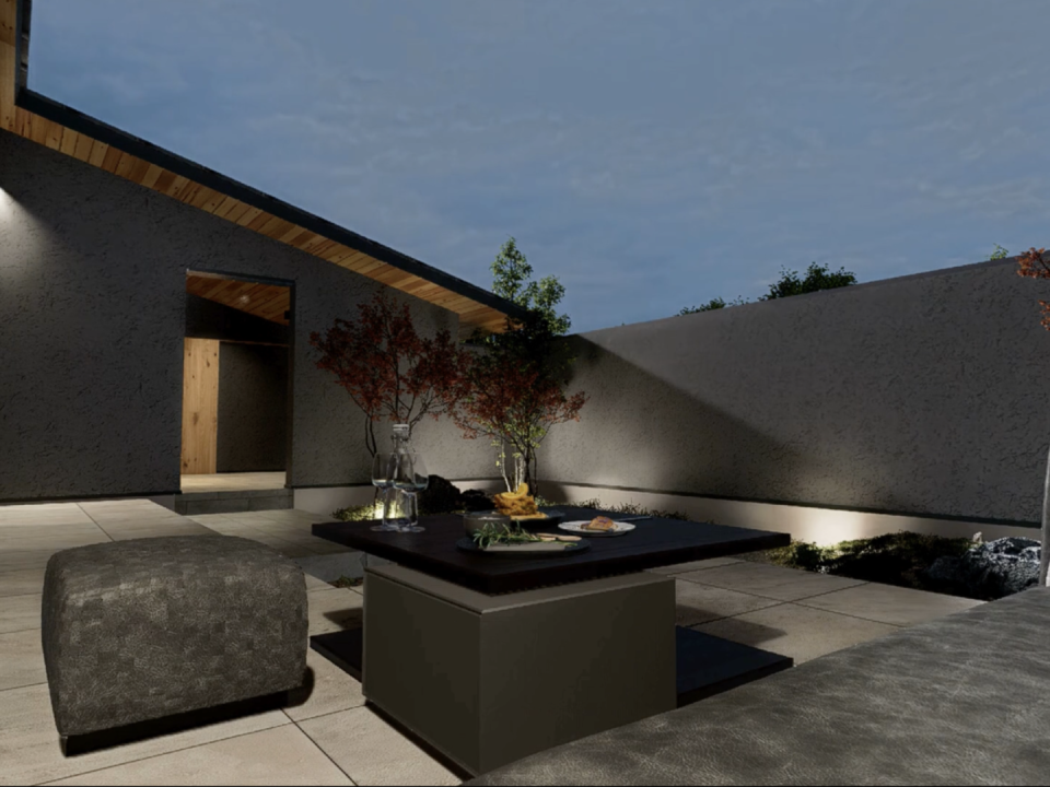 リビングのダウンフロアに、インナーテラス・中庭へと続く大きな窓。