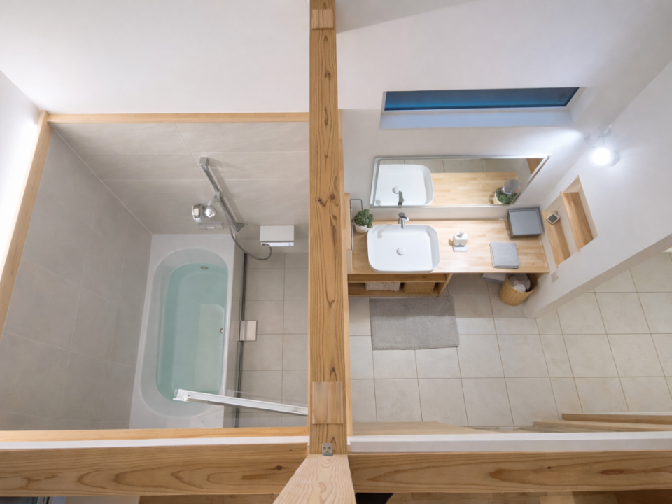 家中どこでも寒くないからこそ叶う「吹き抜けのある浴室」