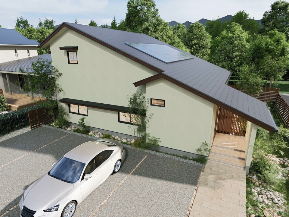 屋根にはソーラーパネルを搭載し、環境と家計にも配慮しました。