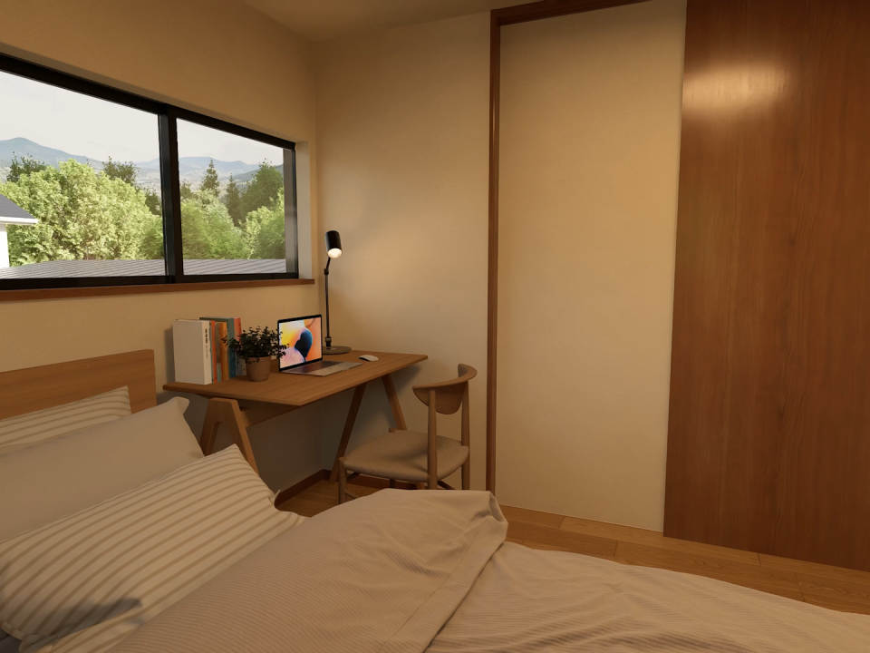 窓から差し込む光と緑を眺めながら、仕事や趣味に没頭できる、秘密基地のような特別な空間です。 -
