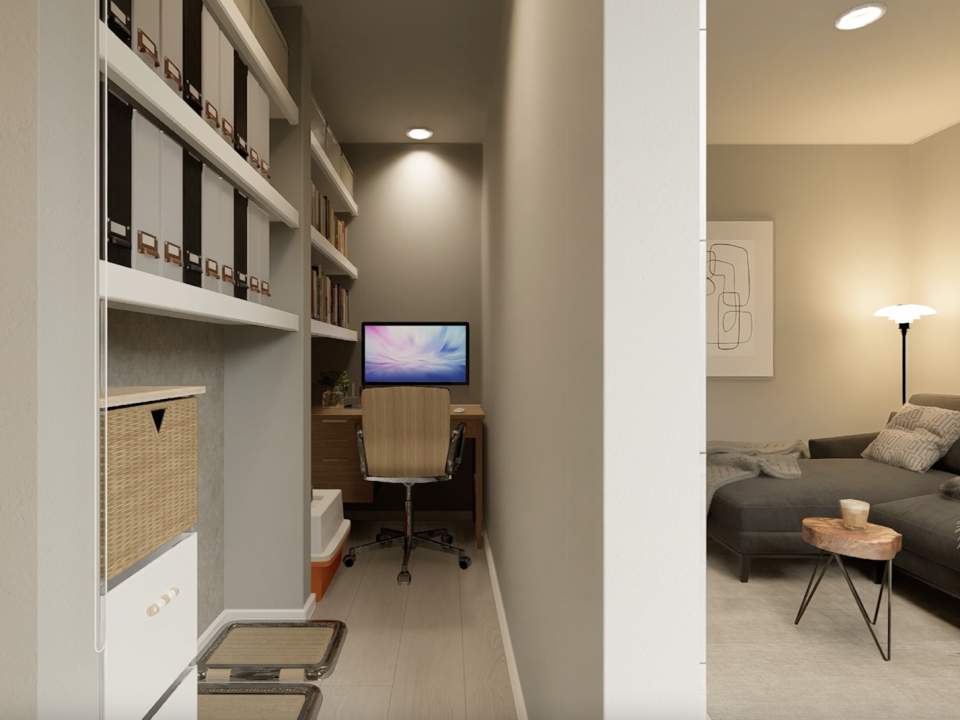 リビングの横には、仕事部屋としても使える便利なクロークを配置。