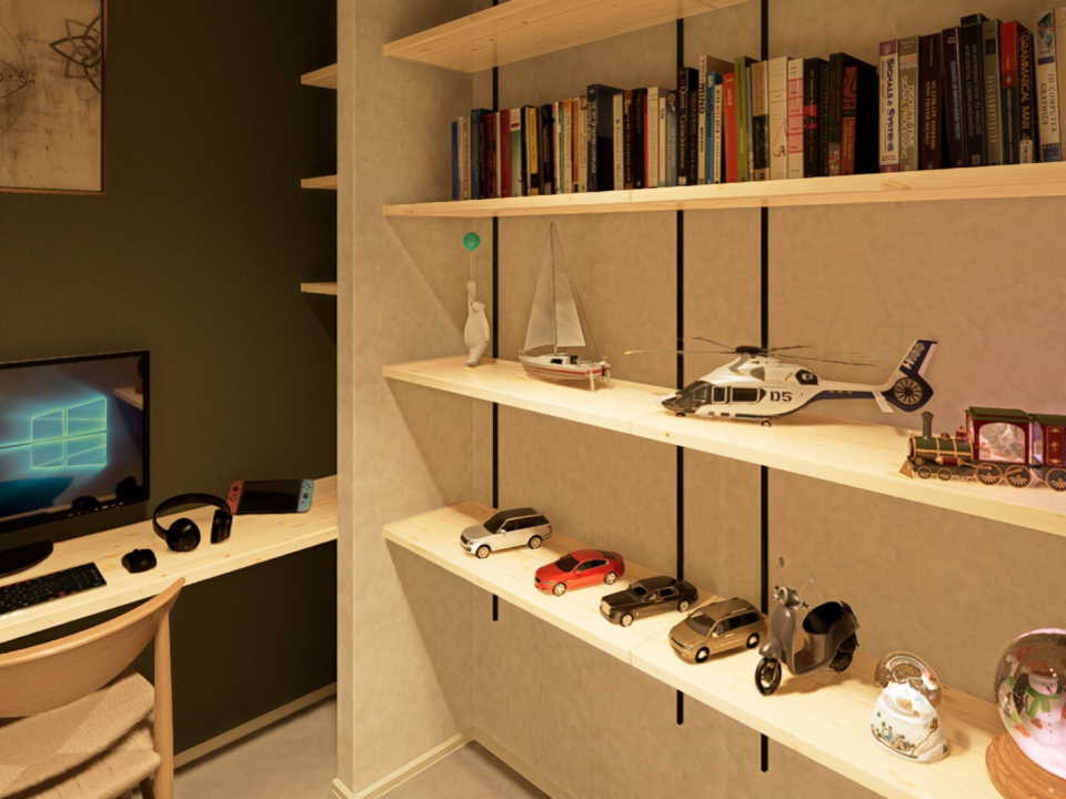 多目的に使えるワークスペース家族の気配を感じながらも集中できるちょうど良い距離感で、読書やリモートワークなど多目的に活用できます。