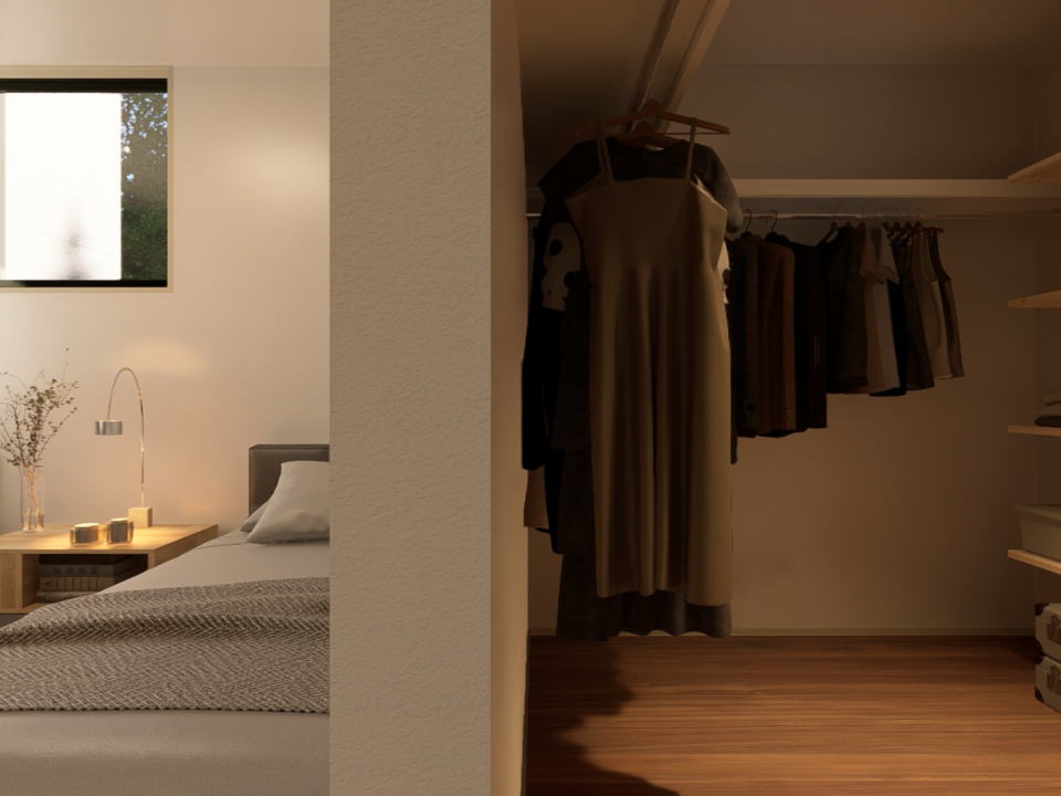 ウォークインクローゼットが直結し、収納機能も充実しています。